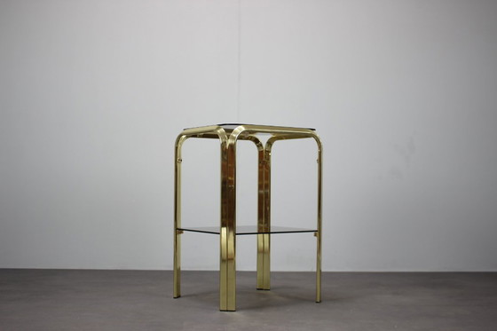 - Mid Century theetafel van messing en gerookt glas, 1970, Duitsland,