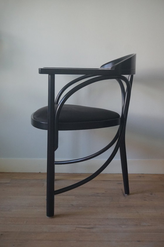 De vintage Thonet stoel no. 81 is een zeer elegante stoel door zijn gebogen zwart gelakte frame. Uniek aan deze stabiele stoel is dat hij is ontworpen met 3 poten.