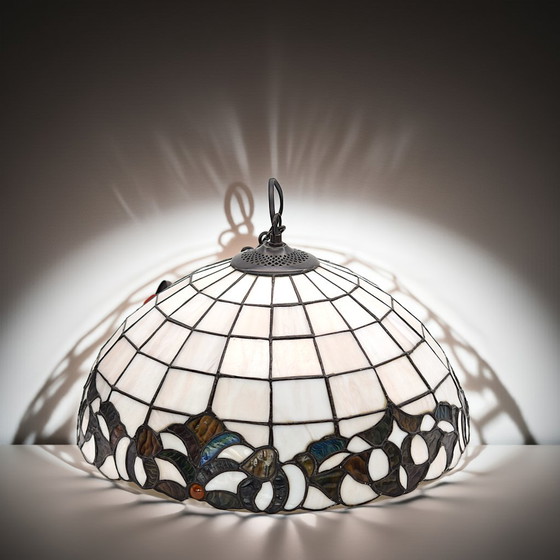 Tiffany Stijl Plafondlamp – Handgemaakte Vintage Hanglamp van Gekleurd Glas