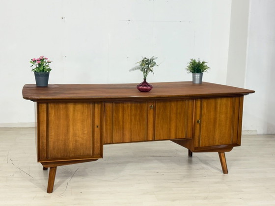 Te koop: een hoogwaardig vintage bureau uit de jaren 60 in uitstekende staat. Als vrijstaand meubelstuk is het een echte blikvanger en kan het perfect in het midden van een kamer worden geplaatst.