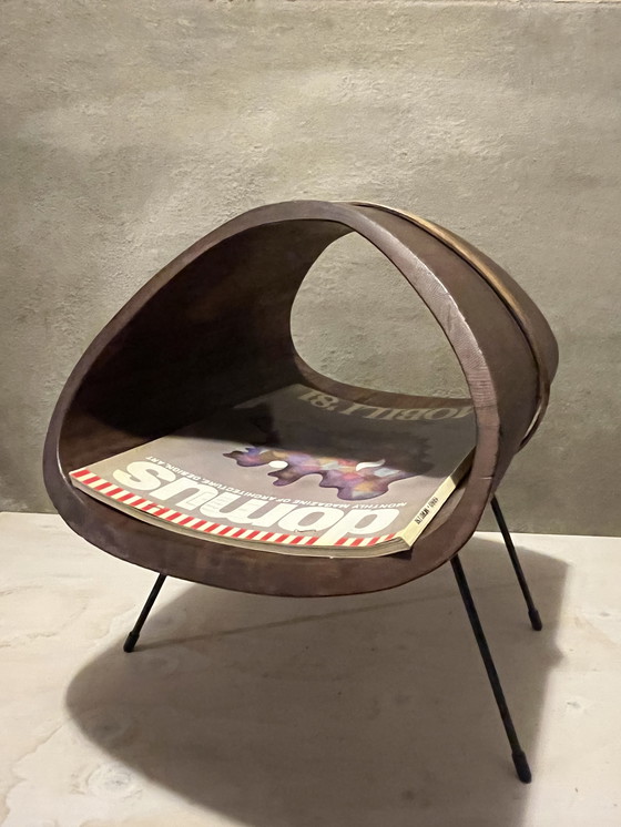 Dit prachtige tijdschriftenrek belichaamt de elegantie van mid-century modern design en biedt een verfijnde oplossing voor het ordenen van uw favoriete tijdschriften. Gemaakt van rijk bruin hout, is de strakke, gebogen vorm zowel functioneel als esthetisch aantrekkelijk, waardoor het een perfecte aanvulling is op elke moderne woonruimte.