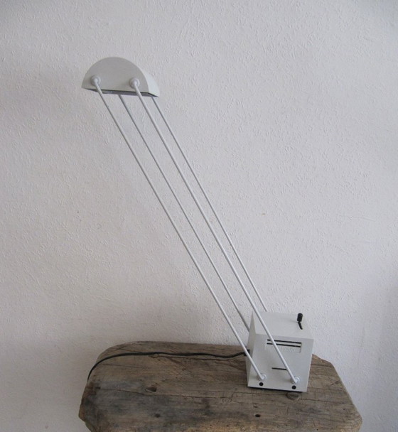 Deze halogeen Tokio bureaulamp is ontworpen door de Japanner Shigeaki Asahara voor de Italiaanse fabrikant Stilnovo in de jaren 80.