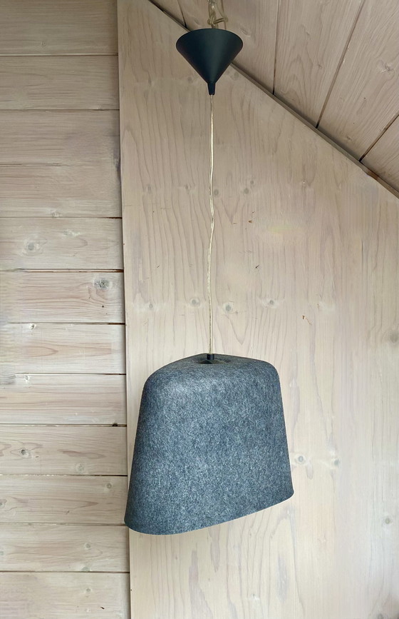 Field Shade Hanglamp Grijs Tom Dixon is een unieke hanglamp. De lamp is gemaakt van vilt, een materiaal dat zelden in lampen wordt gebruikt. De lamp heeft een voelbaar oppervlak wat een unieke uitstraling geeft. De lamp heeft een zachte driehoekige vorm, is aan de buitenkant grijs en aan de binnenkant wit. De lamp schijnt een schitterend en prettig licht.