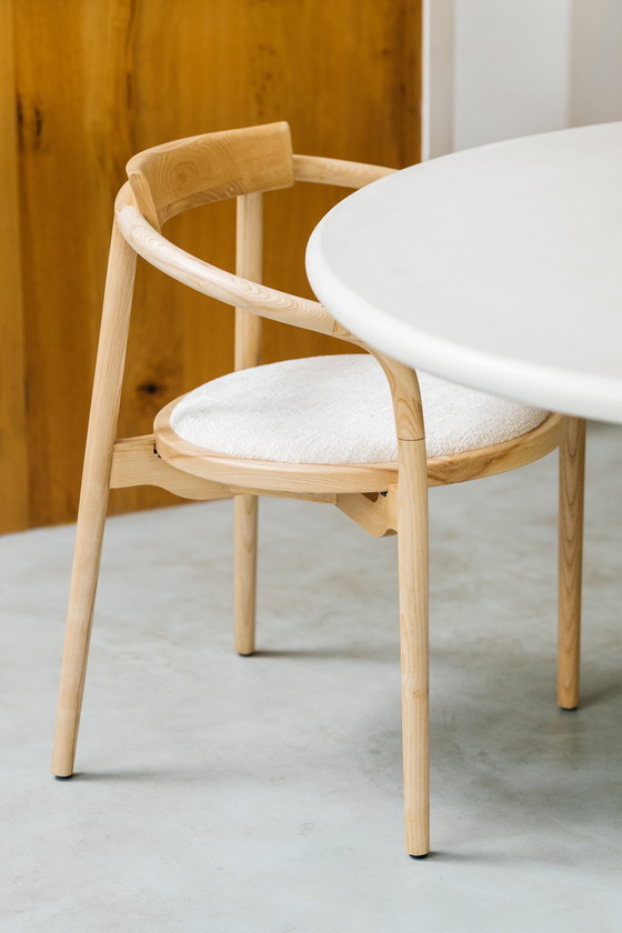 TOOON. EDO Chair Naturel Ash Een houten designstoel met een omkeerbaar zitvlak: aan de ene zijde hout, aan de andere zijde gestoffeerd met afwasbare stof Design stoel 2 in 1 design Eik Afwasbare stof (aquaclean) SGS gecertificeerd Meerdere stuks op voorraad