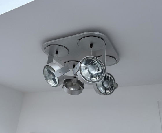 De 4 dimbare spots zijn in iedere richting verstelbaar en draaibaar. Daardoor kan eenvoudig iets uitgelicht worden. Ivm verhuizing past deze lamp niet langer bij de nieuwe inrichting. Nog als nieuw. Oorspronkelijke prijs EUR 700