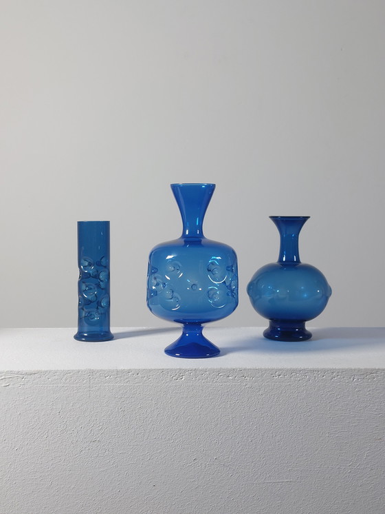 Trio vintage glazen vazen uit het midden van de 20e eeuw, Lauscha Thüringen