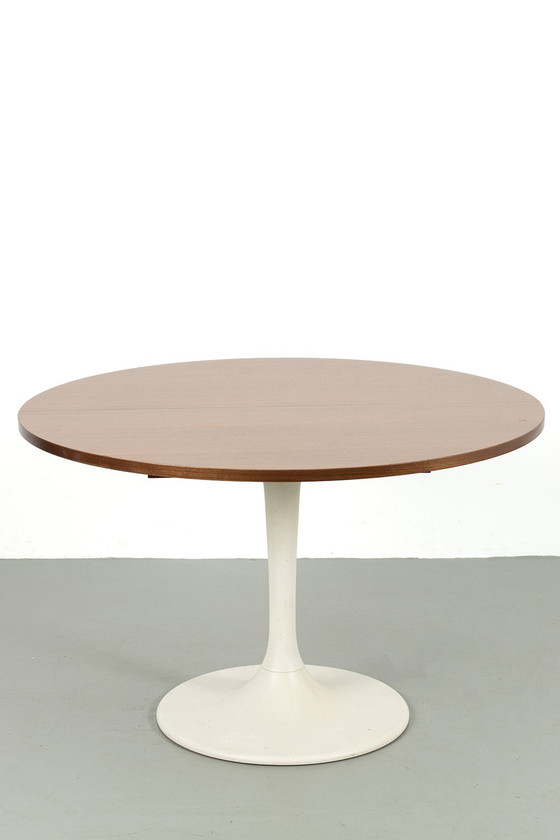 Tulpvoet tafel; een Decennia Design DIY project! Een tafelblad wat we nog hadden hebben we gecombineerd met een kunststof tafelpoot.De tafel is in een goede vintage staat.