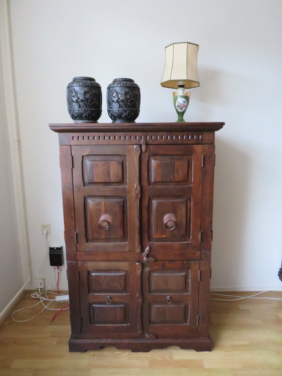 Deze klassieke tv-/computerkast is een prachtige toevoeging aan elk interieur. Gemaakt van hoogwaardig hout, straalt het een tijdloze charme uit die perfect past in zowel traditionele als moderne omgevingen. De kast biedt voldoende ruimte voor het opbergen van elektronica en accessoires, met handige planken die gemakkelijk toegankelijk zijn.