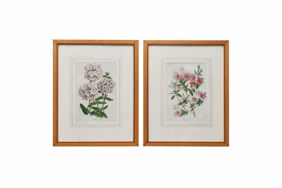 De prenten tonen een azalea en een verbena en zijn erg aantrekkelijk en decoratief.