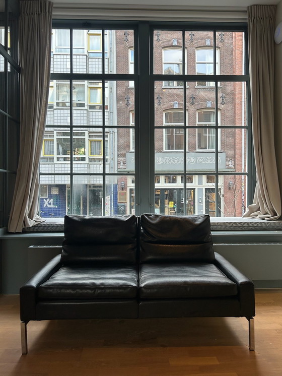 Maak kennis met de Wilkhahn tweezitsbank van zwart leer, een verfijnd meubelstuk dat moderne elegantie en comfort combineert. Ontworpen door Hans Peter Piehl.