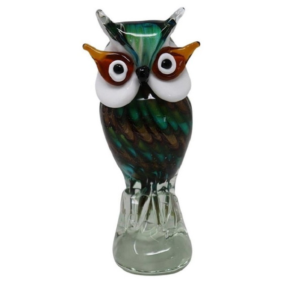 Deze uil van Murano-glas getuigt van de rijke traditie en het buitengewone vakmanschap dat de kunst van Murano-glas kenmerkt. Het veelkleurige palet met goudstof insluitsels verbetert dit beeld, waardoor het niet alleen visueel aantrekkelijk is, maar ook een uitstekend voorbeeld van de verfijnde methoden die Murano glas zo begeerd hebben gemaakt. Het glinsterende effect dat wordt veroorzaakt door de goudstofinsluitsels is een kenmerkende techniek die vaak wordt gebruikt om een vleugje luxe en diepte toe te voegen, waardoor het stuk in verschillende lichtomstandigheden transformeert en tot leven komt. De vriendelijke uitdrukking op het gezicht van de uil is een bewijs van het vermogen van de kunstenaar om persoonlijkheid en warmte in het glas te injecteren, een moeilijke prestatie gezien het medium.