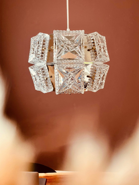 Een designstuk van de Zweedse ontwerper Carl Fagerlund een hanglamp uit Zweden gemaakt rond de jaren “60 in de glasfabriek Orrefors. Het ontwerp staat bekend om zijn dubbele glazen lamphuizen met gestructureerd binnenglas, gecombineerd met het chroom wat zorgt voor een charmant en uniek lichtspel 😍