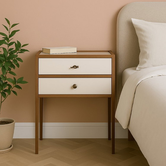 Laatste exemplaar van kastje ‘Kate’ door Marcel Wanders – stijlvol nachtkastje of kaptafel met messing details, notenhout en leer.
