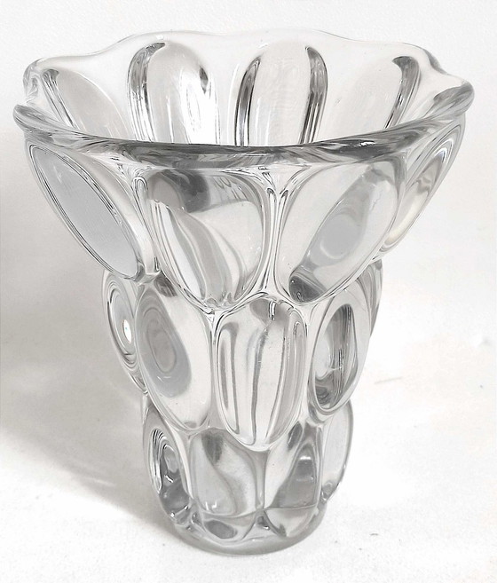 Honingraatkristallen vaas van Pierre d'Avesn Franse meester-glasblazer (1901 - 1990). Ongesigneerd. Jaren '30 Goede staat Hoogte 20,7 cm Breedte 17 cm Diameter voet 7,5 cm Gewicht exclusief verpakking 2,3 kg Zorgvuldig verpakt Verzending per koerier