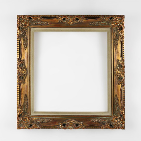 Decoratieve houten vergulde schilderijlijst in barokstijl. Gemaakt van hout in de jaren 1960 in België. Met prachtige klassieke decoraties en een rijke, glanzende afwerking. Een tijdloos stuk om je favoriete schilderij in uit te stallen en een unieke stijl uit te drukken. Afmetingen lijst: Hoogte: 39 cm Breedte: 29 cm Ref. 24-0408