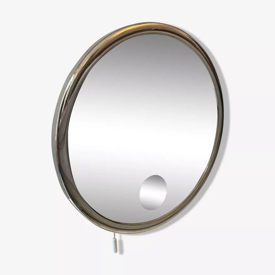 Vergulde draaibare Brot spiegel, vergrotend en verlichtend, Frankrijk 1970