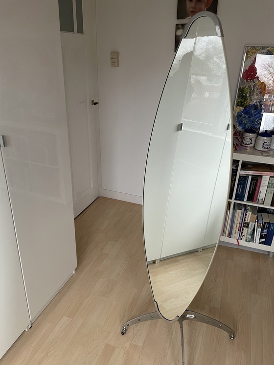 De staande spiegel “Dulton” is ontworpen door de Japanse ontwerper Sasamoto. De spiegel is verstelbaar in hoogte, draaibaar en kantelbaar. De fabrikant is Li Qian.