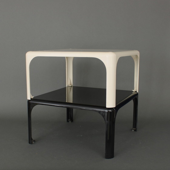 Set van 2 stapelbare tafeltjes, een zwart en een wit, uitgevoerd in ABS plastic.