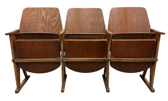 Deze driezits bioscoopbank werd in de jaren 60 geproduceerd door Ton (voorheen Thonet) in Tsjecho-Slowakije. De stoelen zijn stabiel en overal neer te zetten. Hij is gemaakt van beukenhout (deels massief hout, deels gefineerd multiplex). De zittingen zijn opklapbaar. Het gewicht van de bank is 27 kg.