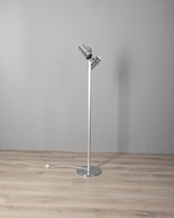 Verchroomde metalen vloerlamp, twee verstelbare lampen, Italiaans ontwerp, jaren 1970.