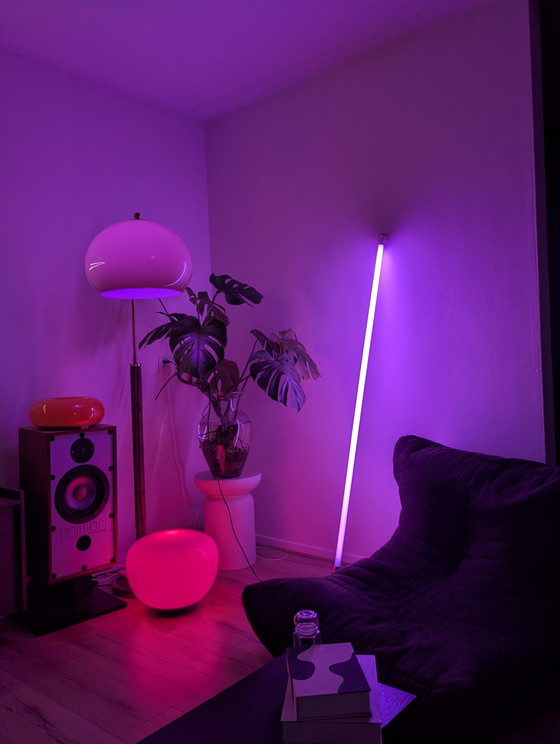 Breng een vleugje retro-futurisme in je interieur met deze opvallende vintage ANS neon tube in een levendige paarse kleur. Deze originele lichtstaaf, vervaardigd door ANS American Neons in Duitsland, is een echte blikvanger die elke ruimte transformeert met zijn warme en gelijkmatige licht. Perfect voor liefhebbers van Cyberpunk, Synthwave of een eclectische stijl, deze neon tube is zowel functioneel als esthetisch aantrekkelijk. Met een indrukwekkende lengte van 1,65 meter en een krachtige 58W Osram Lumilux buis, biedt het een superieur lichtveld dat moderne LED-alternatieven overtreft. Plug & Play gemak betekent dat je hem direct kunt aansluiten op 230V zonder gedoe met transformatoren. Voeg een unieke vintage vibe toe aan je huis of studio met deze professionele lichtoplossing.