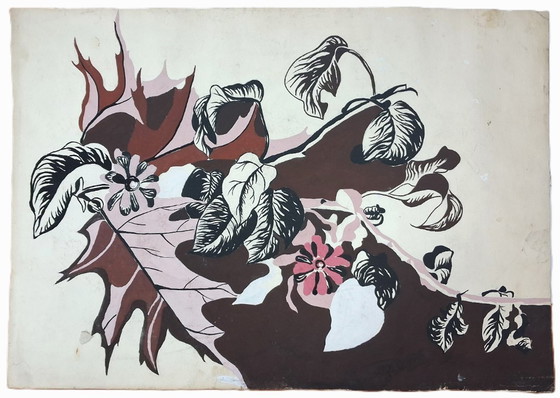 Dompel jezelf onder in de tijdloze elegantie van dit vintage aquarelschilderij, een betoverend stuk dat een vleugje natuurschoon in huis haalt. Dit kunstwerk zonder lijst, met een afmeting van 50x35 cm, toont een complexe weergave van bladeren en bloemen, weergegeven in een harmonieus palet van aardse tinten. De delicate penseelvoering en subtiele kleurovergangen roepen een gevoel van rust en verfijning op, waardoor het een perfecte aanvulling is op elke kunstcollectie of interieur.