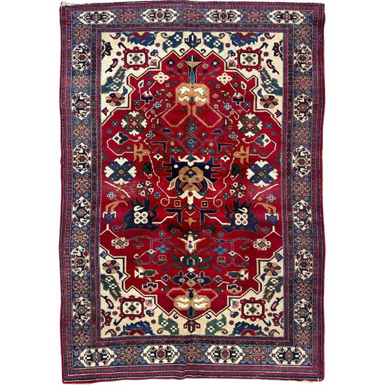 Ontdek de aantrekkingskracht van dit zorgvuldig handgeknoopte tapijt uit het midden van de 20e eeuw.