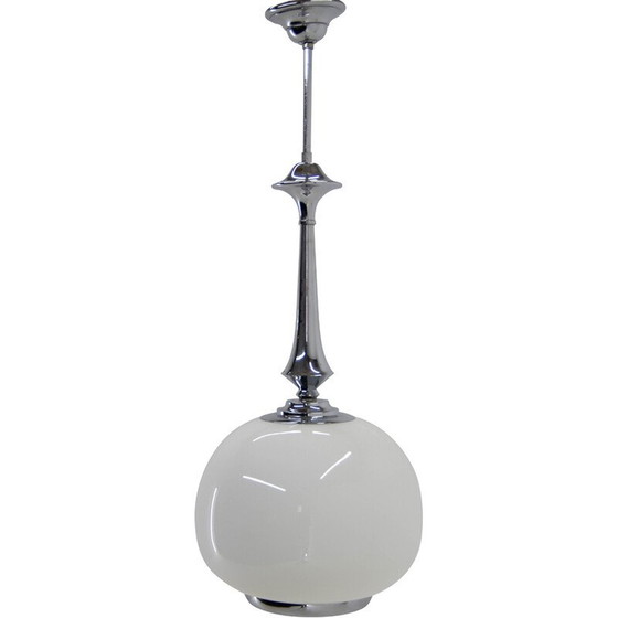 Vintage Art Deco hanger van geblazen glas en chroom, 1940
