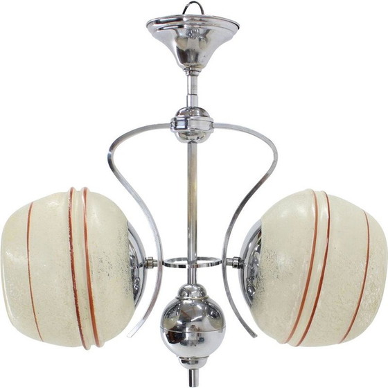 Vintage art deco kroonluchter van chroomglas, Tsjecho-Slowakije 1930