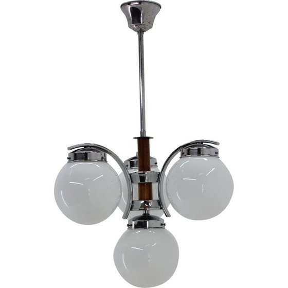 Vintage Art Deco kroonluchter van metaal en glas, Tsjecho-Slowakije 1930