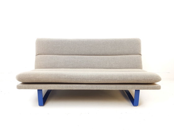 Fantastische Kho Liang Le 2,5 zit bank van Artifort. Nieuw gestoffeerd in de bruin/beige wollen Andes stof van De Ploeg. Ziet er weer helemaal TOP uit met een uniek blauw gespoten frame. Wil je het frame liever zwart of in een nóg andere kleur. Dat kan, laat het ons weten.