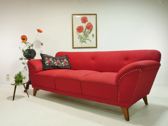 Deze vintage bank is een gezellig en mooi vormgegeven zitmeubel uit de jaren 60. Hij is gemaakt van de originele materialen. De romp is gemaakt van sparren- en beukenhout.