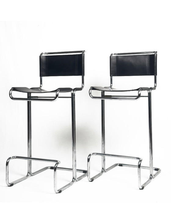 Vintage barkrukken van Linea Veam, paar, leer en chroom, jaren 60
