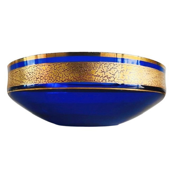 Prachtig, deze vintage Vintage Barthman kobalt blauw schaal kristal met gouden decoratie ring uit de jaren 40. De schaal is in goede vintage staat, heeft wat lichte schuifsporen aan de onderzijde. De schaal is aan de onderzijde gemerkt (zie foto).