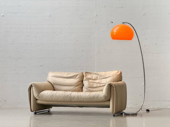Vintage beige leren tweezitsbank, Zwitserland, jaren 80