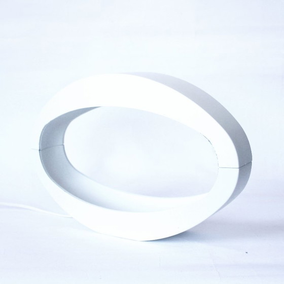 Ontworpen rond het jaar 2000 door Massive Belgium, valt de "Berio" lamp op door zijn minimalistische witte afwerking en elegante elliptische vorm. Geïnspireerd door de verfijnde esthetiek van het ruimtetijdperk voegt deze retro tafellamp zowel tijdloze charme als een strakke, futuristische uitstraling toe aan elke kamer.