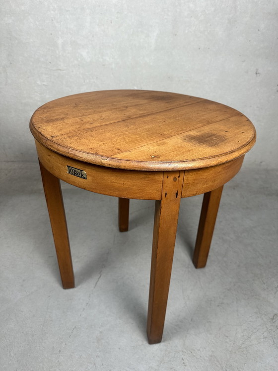 Origineel tafeltje van Torck. Leuk formaat. Hoogte: 55,5cm. Diameter: 50cm. Kan perfect dienen als bijzet- of plantentafel. Merk de tand- en groefverbindingen op. Gewicht: 5,6kg.