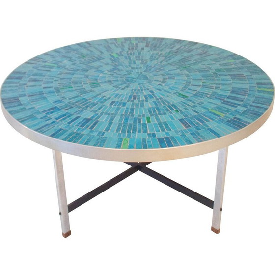 Vintage blauw mozaïek salontafel van Berthold Müller-Oerlinghausen, Duitsland, jaren 1960