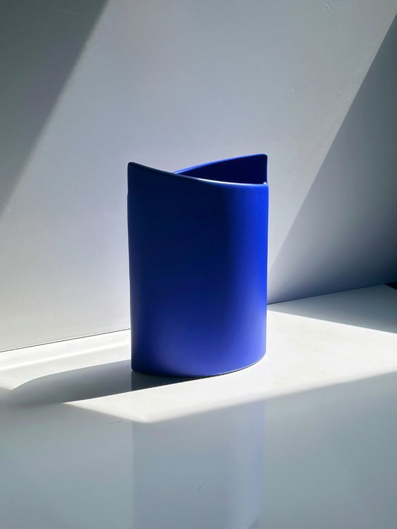 Vintage blauwe ASA vaas Elypse bloemenvaas kobaltblauw postmodern keramiek Memphis Milano jaren 90 1990 Duitsland Swirl