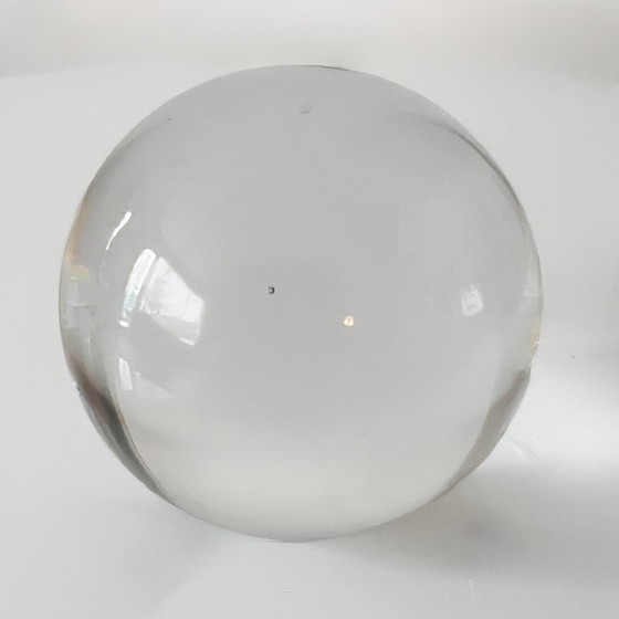 Vintage bolvormige Presse-papier gemaakt van helder kristal glas en een doorsnede van 5,5 cm.