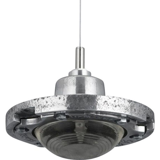 Teruggevonden Britse G.E.C vliegveldverkeerslichten die oorspronkelijk geïnstalleerd waren op een R.A.F basis in Noordwest Wales. Prachtig verfijnde lichten die zijn omgebouwd tot hanglichten, bestaande uit prismatisch glas in een tweedelige gepolijste aluminium behuizing met originele markering. Elk licht wordt geleverd met een nieuwe keramische lamphouder (G9), 2 meter verstelbare ophanging, olifantgrijs gevlochten kabel en plafondmontageplaat.