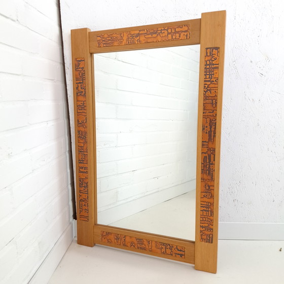 Teakhouten frame met copper reliëf inlay