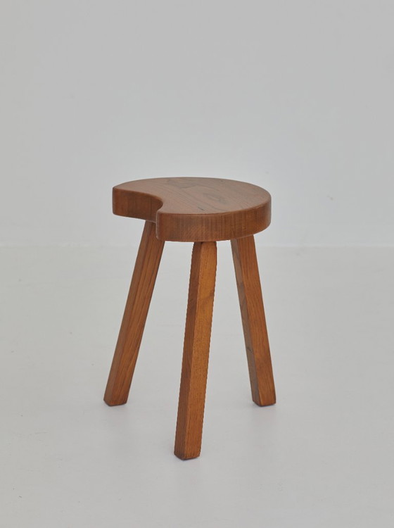 Ontdek deze brutalistische driepootkruk, vervaardigd uit massief beukenhout, een vintage stuk uit de jaren 60. Deze kruk belichaamt de rustieke elegantie en robuustheid die kenmerkend zijn voor de brutalistische stijl, terwijl de natuurlijke houttint een vleugje warmte toevoegt.