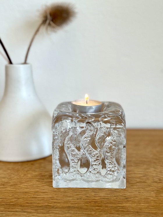 Vintage brutalistische glazen kandelaar Kurt Wokan voor Ingrid Glas jaren 60.