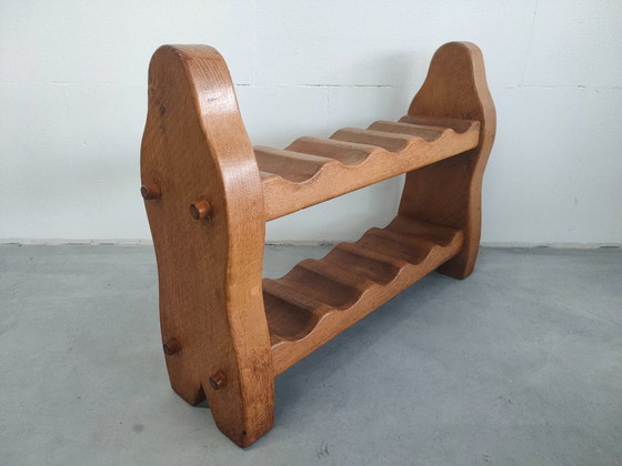 Prachtig eikenhouten wijnrek, toegeschreven aan de jaren 60-70. Prachtig 'patina', netjes weer in een lichte olie gezet, wordt nog even extra gecheckt op stabiliteit en bestendigheid. Weegt +/- 10kg, Gewicht inclusief verpakking zal rond de 13-14 kg uit gaan komen. Wordt enkel verzekerd verzonden met handtekening benodigd voor ontvangst, staat het land van bestemming er niet bij, neem dan even contact met ons op. Vermeldde afmetingen zijn altijd +/-. In verband met wijzigingen bij onze transporteurs per 1-1-2026 (ivm maximaal toegestane formaten, gewichten en kostprijzen, hebben wij de kosten aangepast naar de nieuwe standaarden.