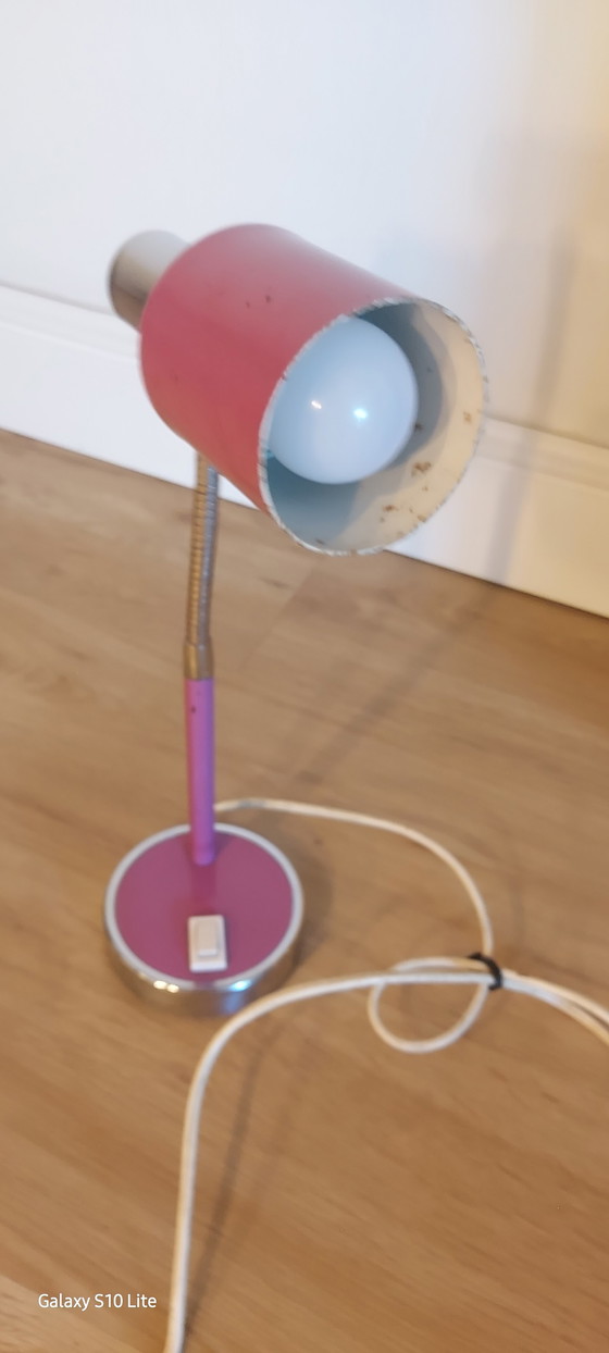 Deze vintage bureau- of tafellamp is een charmante toevoeging aan elke ruimte. Met zijn opvallende paarse en zilveren kleurenschema en flexibele arm is hij zowel stijlvol als functioneel. Perfect voor een retro of vintage interieur, deze lamp biedt een warme en sfeervolle verlichting. Ideaal voor gebruik op een bureau of als sfeerlamp in de woonkamer.