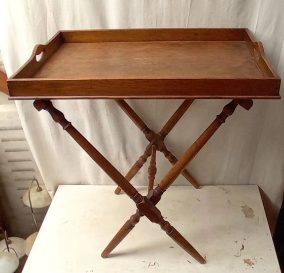 Dit vintage butler dienblad is een charmante toevoeging aan elk huis, met een klassiek houten ontwerp en een rijke bruine afwerking. Het dienblad wordt ondersteund door elegant gedraaide poten, die zowel stabiliteit als stijl bieden. Perfect om op te dienen of als decoratief stuk, het belichaamt een tijdloze aantrekkingskracht die verschillende interieurstijlen aanvult.