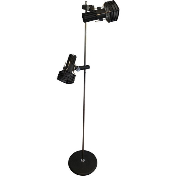 Vintage chromen en zwart gelakte metalen vloerlamp van Parquet Design, Frankrijk 1980