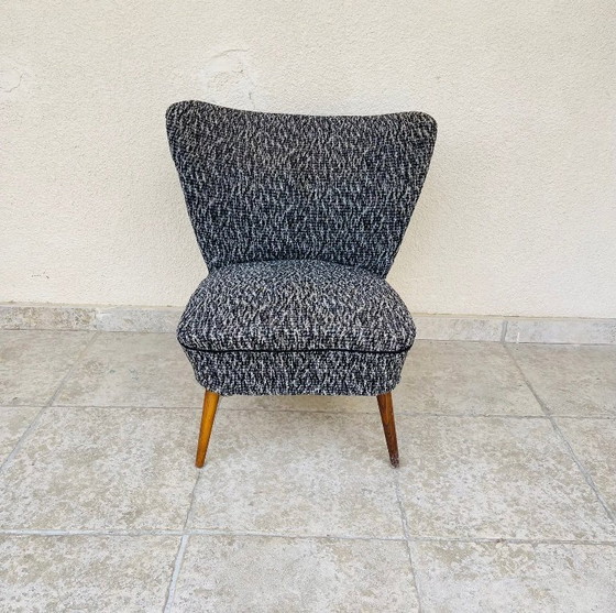 Elegante vintage cocktailstoel, ook wel bekend als een 'schelpstoel', typisch voor Frans design uit de jaren 50 en 60.