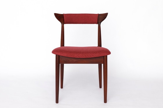 Vintage Cow Horn stoel - jaren 1960/1970 Deens teakhouten eet- of bureaustoel, Bordeaux stoffering, Mid Century Modern